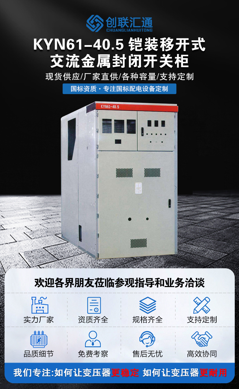 KYN61-40.5型鎧裝移開式交流金屬封閉開關柜系三相 交流50Hz,額定電壓40.5kV的戶內成套配電裝置。作為發(fā)電廠、變電站及工礦企