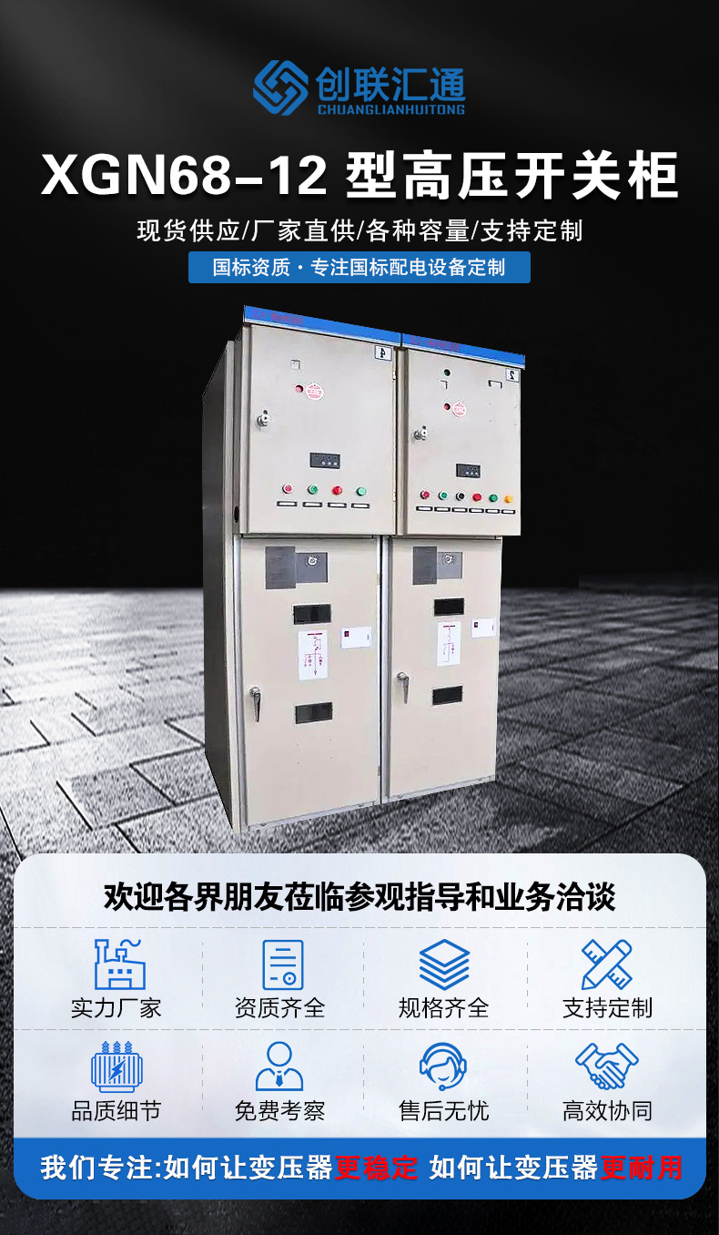 用于環(huán)網(wǎng)供電或雙電源輻射供電系統(tǒng)中,作為電能的控制和保護(hù)裝置,亦可裝入箱式變電站中。該設(shè)備主回路所選用的主要元件為專門(mén)為該開(kāi)關(guān)柜開(kāi)發(fā)的ZN100-12型真空斷路器、FZN-12型真空負(fù)荷開(kāi)關(guān)、FZNR-12型負(fù)荷開(kāi)關(guān)-熔斷器組合電器等。