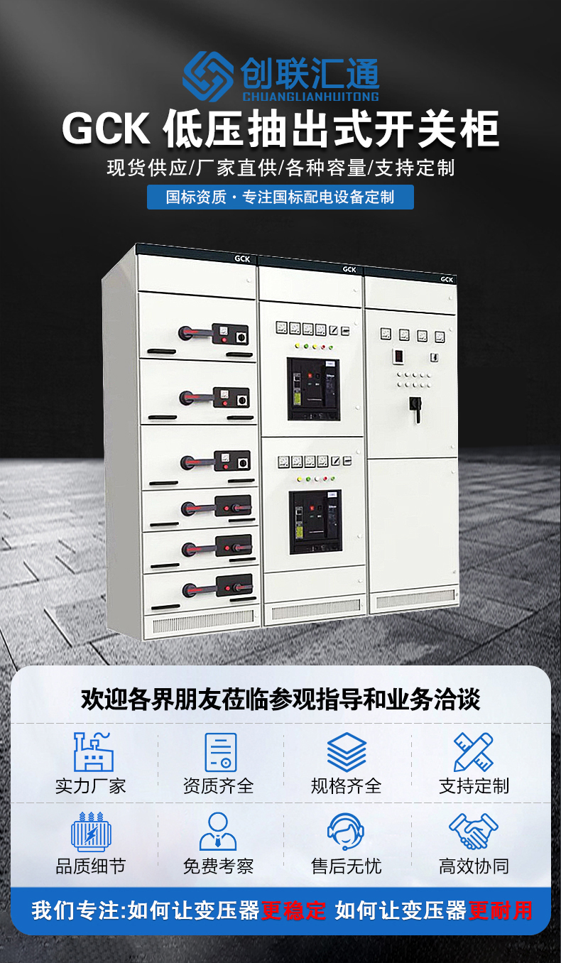 G-GCK型低壓抽出式開關(guān)柜,適用于三相交流50-60HZ,額定工作電壓為380V,額定電流400及以下三相四線制及三相五線制電力系統(tǒng)廣泛應(yīng)用于發(fā)電廠、變電站、工礦企業(yè)、大樓賓館、機場、碼頭以及廣播電視等通信中心,輸配電、電能轉(zhuǎn)換及電能消耗的動力配電中的PC和電動機控制中心MCC。