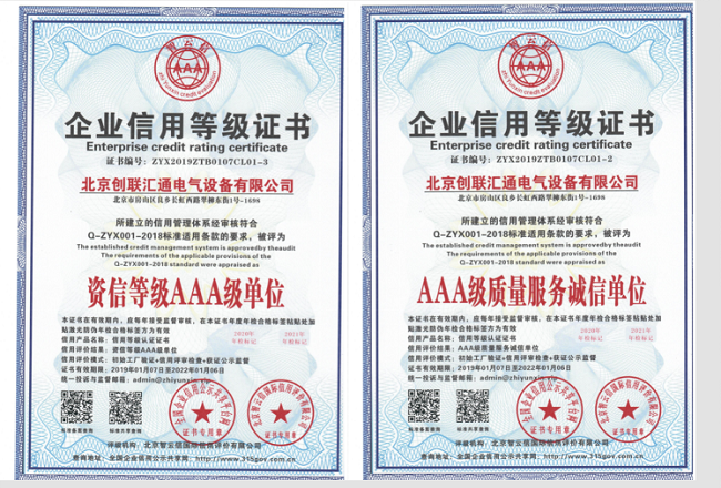 近日,倍受業(yè)內(nèi)關(guān)注的2018年度中AAA級重質(zhì)量守信用企業(yè)復審在北京落幕,中市場監(jiān)測中心聯(lián)合中市場研究中心等多家機構(gòu)以及企業(yè)評審委員會組織專家對申報復審的中AAA級重質(zhì)量守信用企業(yè)等殊榮進行綜合評價。北京創(chuàng)聯(lián)匯通電氣設(shè)備有限公司經(jīng)中產(chǎn)業(yè)質(zhì)量調(diào)查評價中心、中企業(yè)信用評價管理中心等機構(gòu)審核,再次被評為“中AAA級信用企業(yè)”榮譽稱號。